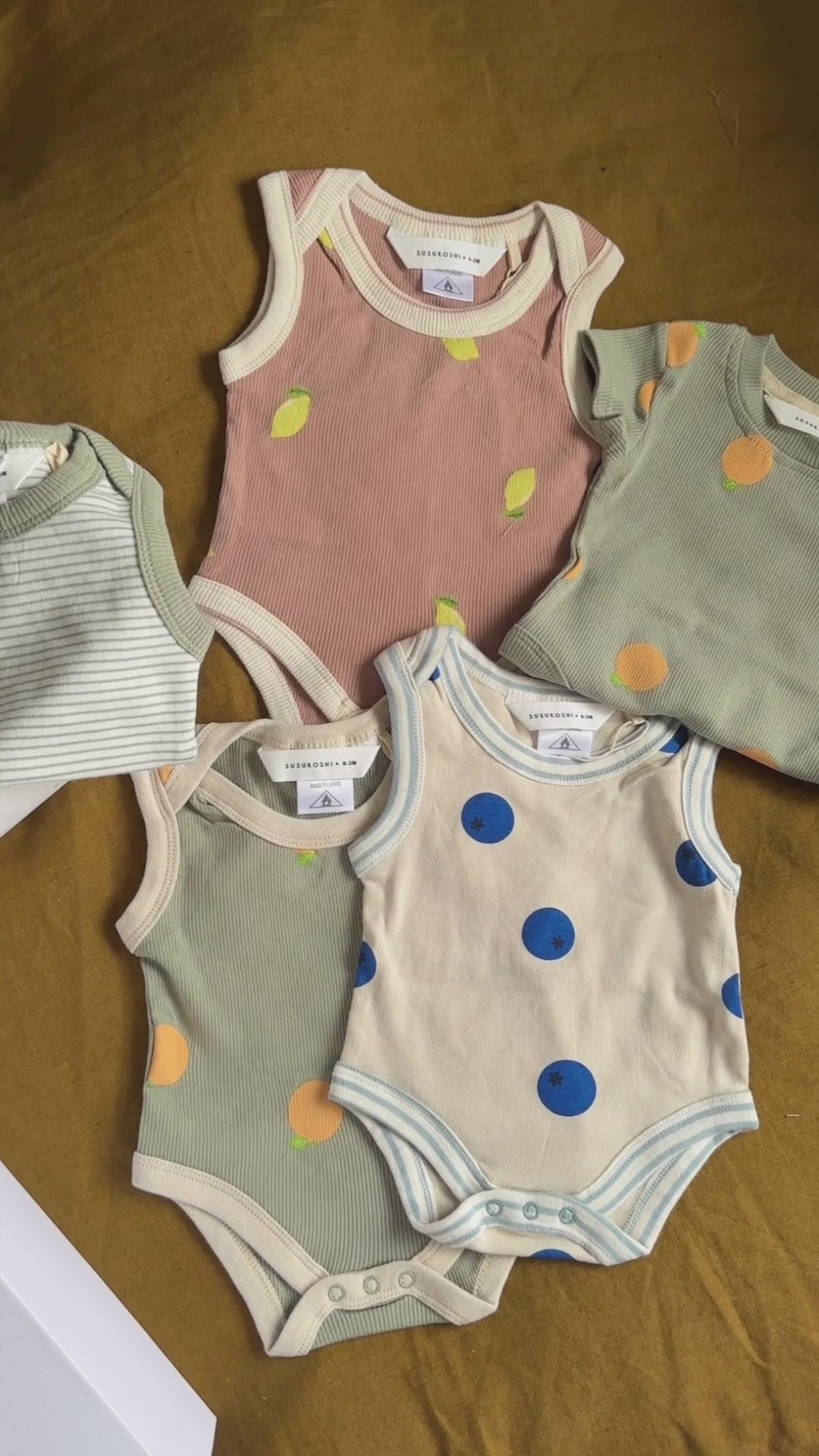 Susukoshi Retro Lapped Singlet Suit Lemons and Seashore- 2 PACK 0-3 mths