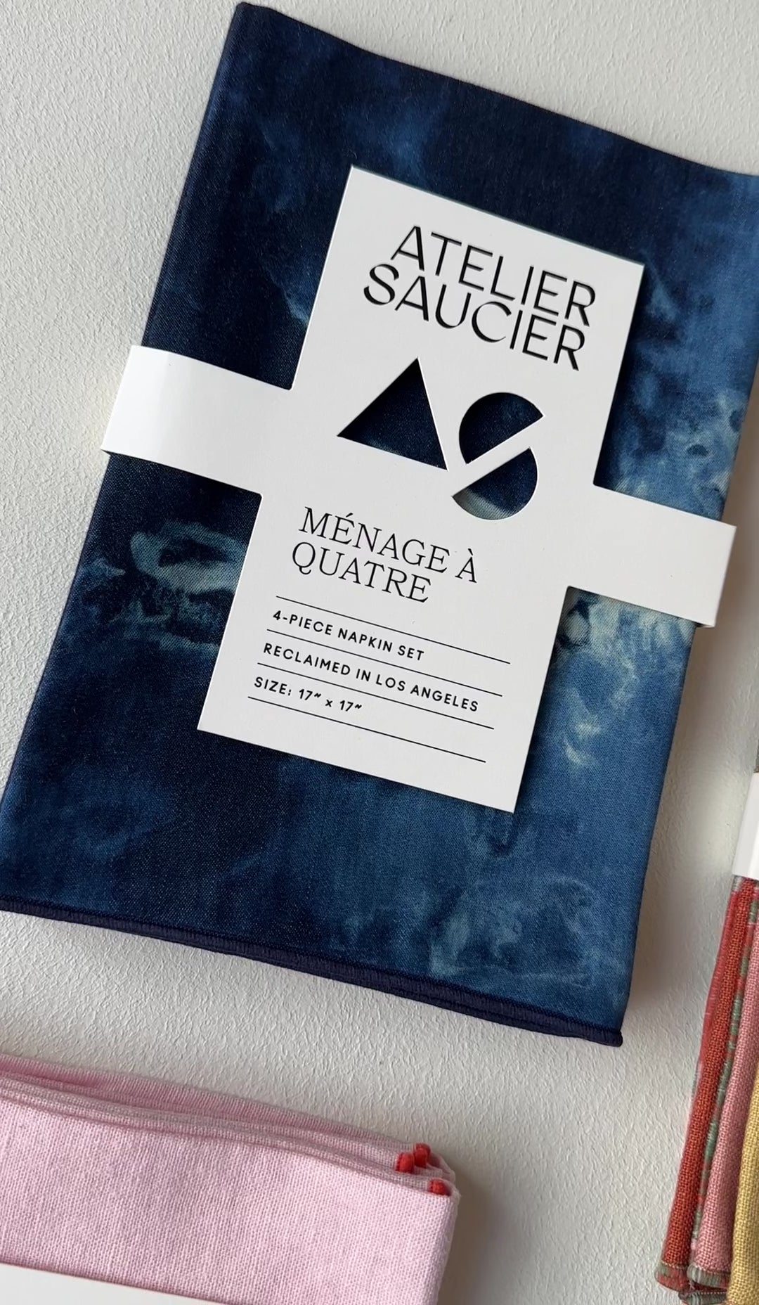 Atelier Saucier is where modern design meets sustainable dining. Based in Los Angeles, this innovative tablescape house reimagines everyday linens with fashion-forward style and a deep commitment to the planet. Each napkin is crafted from reclaimed, premium fabrics like luxe linen, soft chambray, and crisp denim — meaning no two pieces are alike. Perfect for home entertaining, weddings, hospitality, or thoughtful gifting, Atelier Saucier's pieces are made in small batches and fully customisable, offering heirloom quality without the waste. Their playful yet refined designs bring colour, texture, and personality to any setting all while supporting a circular, eco-conscious process.At Claya, we love Atelier Saucier for their creative spirit, sustainability-first approach, and their unapologetic love of a beautifully set table.